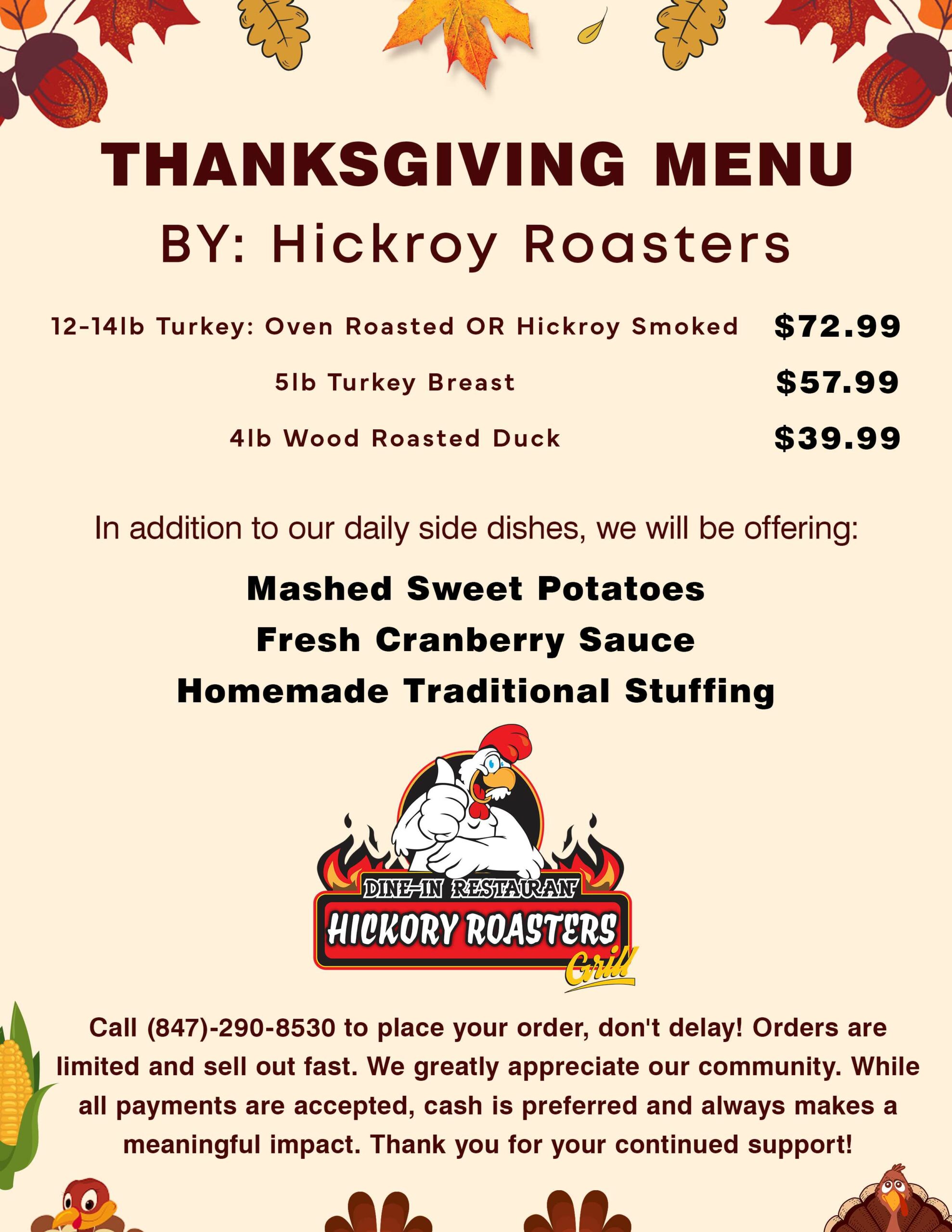 Our unique process of rotisserie is unlike any other; We use hickory wood to cook our chicken which enhances the taste of our rotisserie chicken. Stop on by at our Rolling Meadows locations to taste the difference.